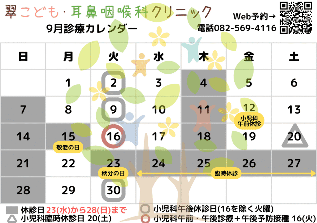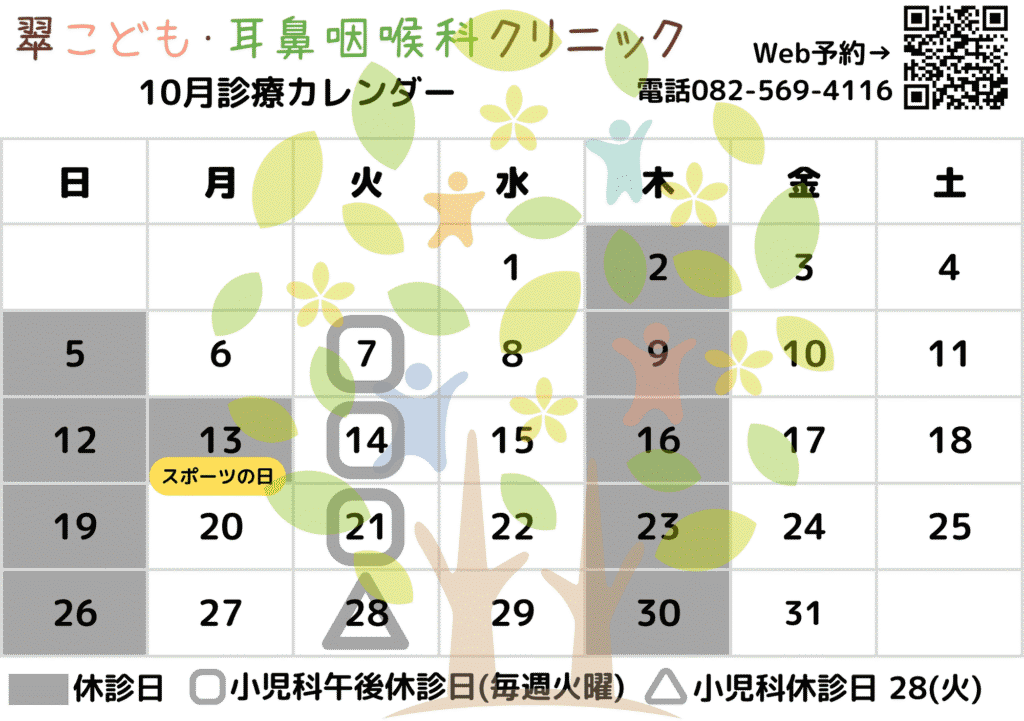 10月は28(火)のみ小児科が臨時休診となります(耳鼻科は午前午後、通常診療体制です)。